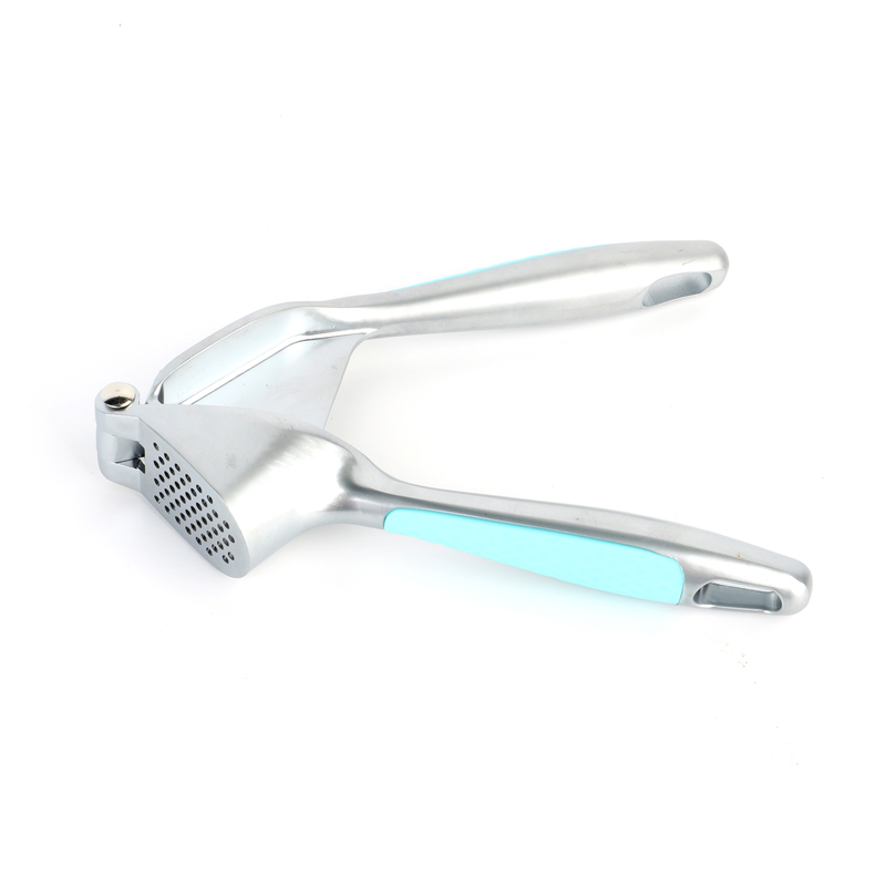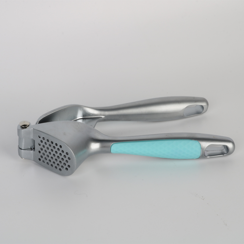 Ang garlic press ay ginawa mula sa de-kalidad, environment friendly na zinc alloy. Pagkatapos na maging die-cast at makinis na pinakintab, pagkatapos ay i-electroplated ito sa iba't ibang kulay. Ang bawat kulay ay ipinares sa isang katugmang Macaroon-style na plastic handle na idinisenyo upang maiwasan ang pagdulas. Ang bagong disenyo na matibay na zinc alloy na mga butas ng garlic press para sa pagpapakawala ng bawang ay makapal na nakaayos sa isang pabilog na pattern. Gamit ang pababang presyon mula sa mekanismo ng pagpindot at ang leverage na prinsipyo sa lugar, ang garlic paste ay madali at mahusay na nakuha sa isang pare-pareho at pinong pagkakapare-pareho, na makabuluhang nagpapabuti sa kahusayan sa pagluluto.