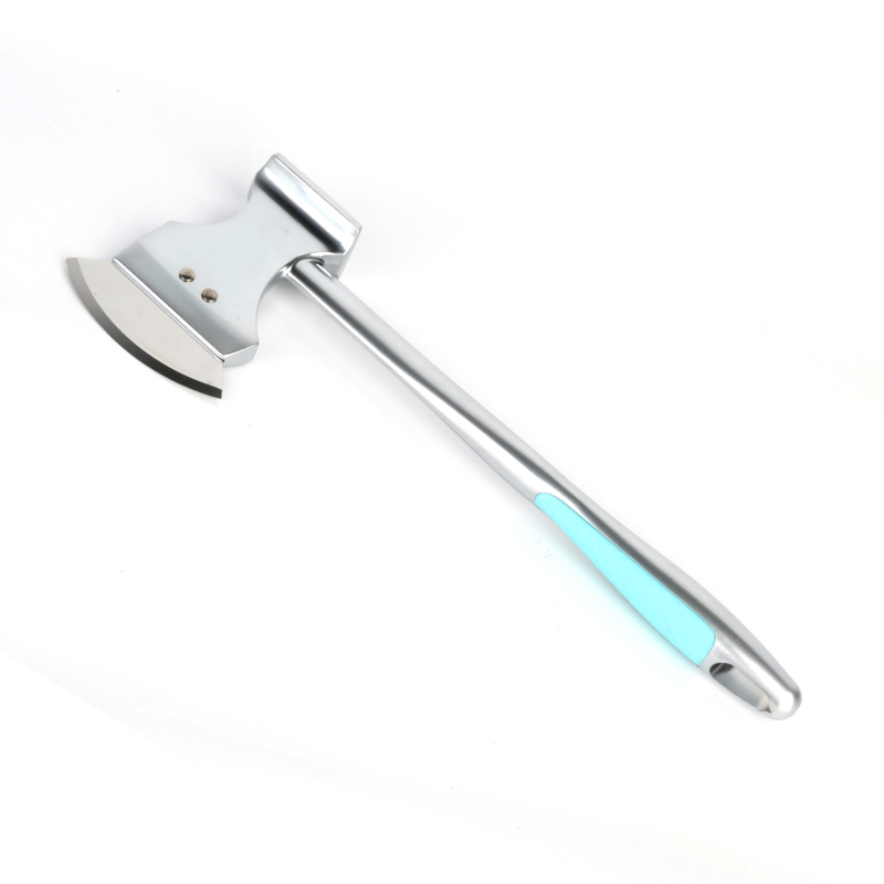 Ang talim ng pizza cutter ay gawa sa de-kalidad na 304 na hindi kinakalawang na asero, at ang disenyo nito ay hango sa hugis ng palakol, na ginagawa itong mas praktikal at kaakit-akit na hitsura. Ang tool ay may katamtamang timbang, na ginagawang madali itong gamitin at maraming nalalaman sa mga pag-andar nito. Ginagamit man bilang meat tenderizer o para sa pagputol ng pizza, ang talim ay maaari ding gamitin para sa pagpuputol ng mga buto ng prutas at pagtanggal ng buto ng prutas. gulay at prutas kapag walang iba magagamit ang mga kutsilyo.