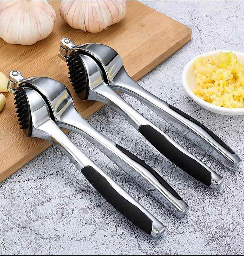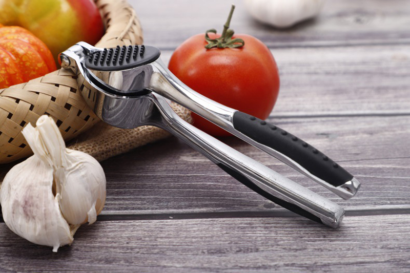 Ang garlic press na ito ay idinisenyo upang kumportableng magkasya sa kamay ng isang nasa hustong gulang, na ginagawang madali at simpleng patakbuhin habang nagbibigay ng matibay at malakas na pagkakahawak. Ang bahagi ng haluang metal ay ginawa mula sa de-kalidad na zinc alloy, na maingat na pinakintab at na-electroplated upang lumikha ng makinis at maliwanag na ibabaw, at isang proteksiyon na layer ay nabuo sa ibabaw upang gawin itong mas matigas at mas matatag. Sa pang-araw-araw na paggamit, ito ay ligtas at environment friendly dahil hindi ito tumutugon sa mga likido o pagkain.