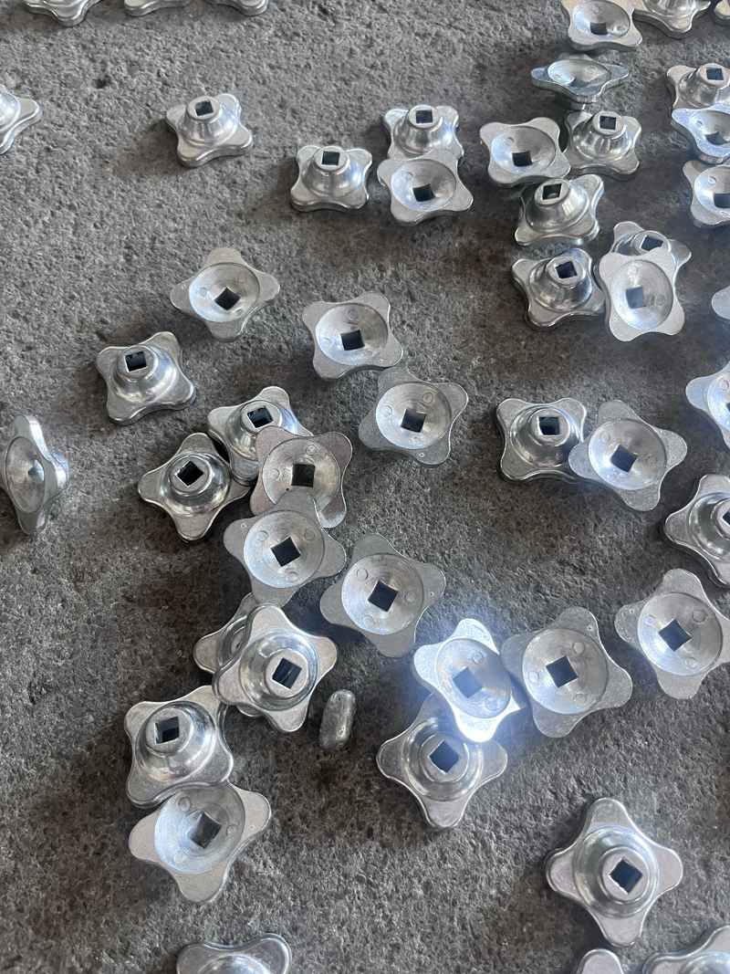 Nakukuha ang pangwakas na kulay sa pamamagitan ng espesyal na pamamaraan ng electroplating na gumagawa ng kakaibang 'green antique copper' finish. Ang paraang ito ay nakaayon sa parehong mga proseso ng plating na ginagamit para sa chrome-finished kitchen tools gaya ng peelers, garlic presses at nut crackers, ngunit may kakaibang kulay.