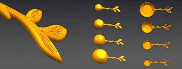 Una, kasangkot sa pagtatasa ng hugis at potensyal na paggamit ng produkto batay sa naunang karanasan.Iging zinc alloy bilang pangunahing materyal, kinakalkula namin ang mga katangian ng materyal at mga katangian ng ibabaw, isinama ang mga ergonomya at dinisenyo ang pangkalahatang sukat para sa apat na pagsukat ng mga kutsara o ice spoons.Subequely, pino-pino ang bawat curve, r-radius anggulo at iba pang mga detalye ng maliit na sukat batay sa mga sukat na ito.